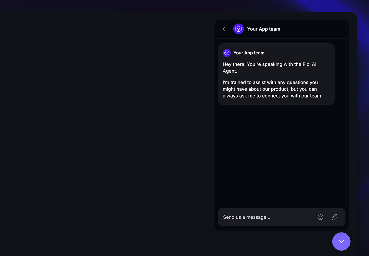 After they send their first message, Fibi automatically responds and attempts to resolve their query using your connected help content.